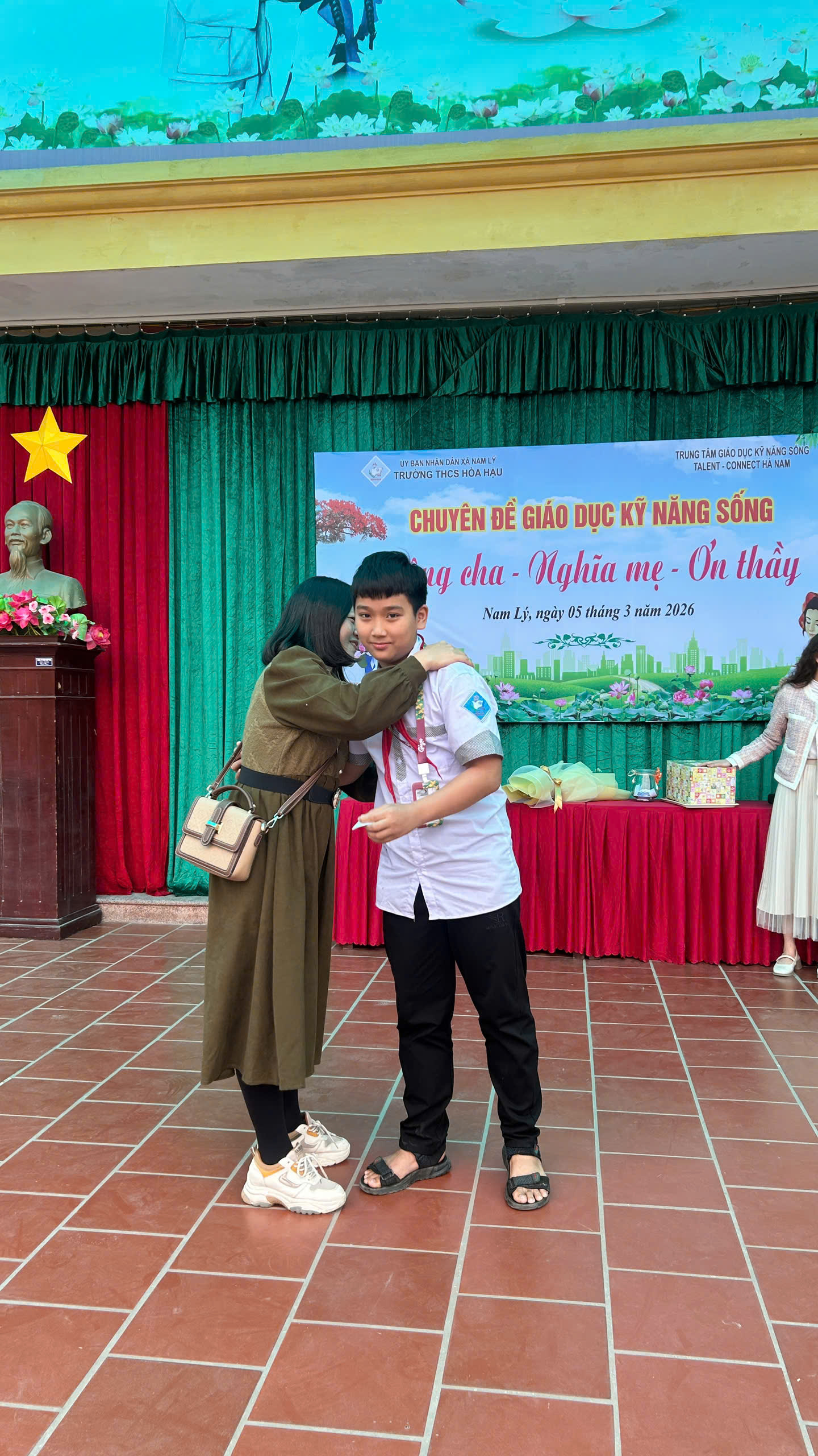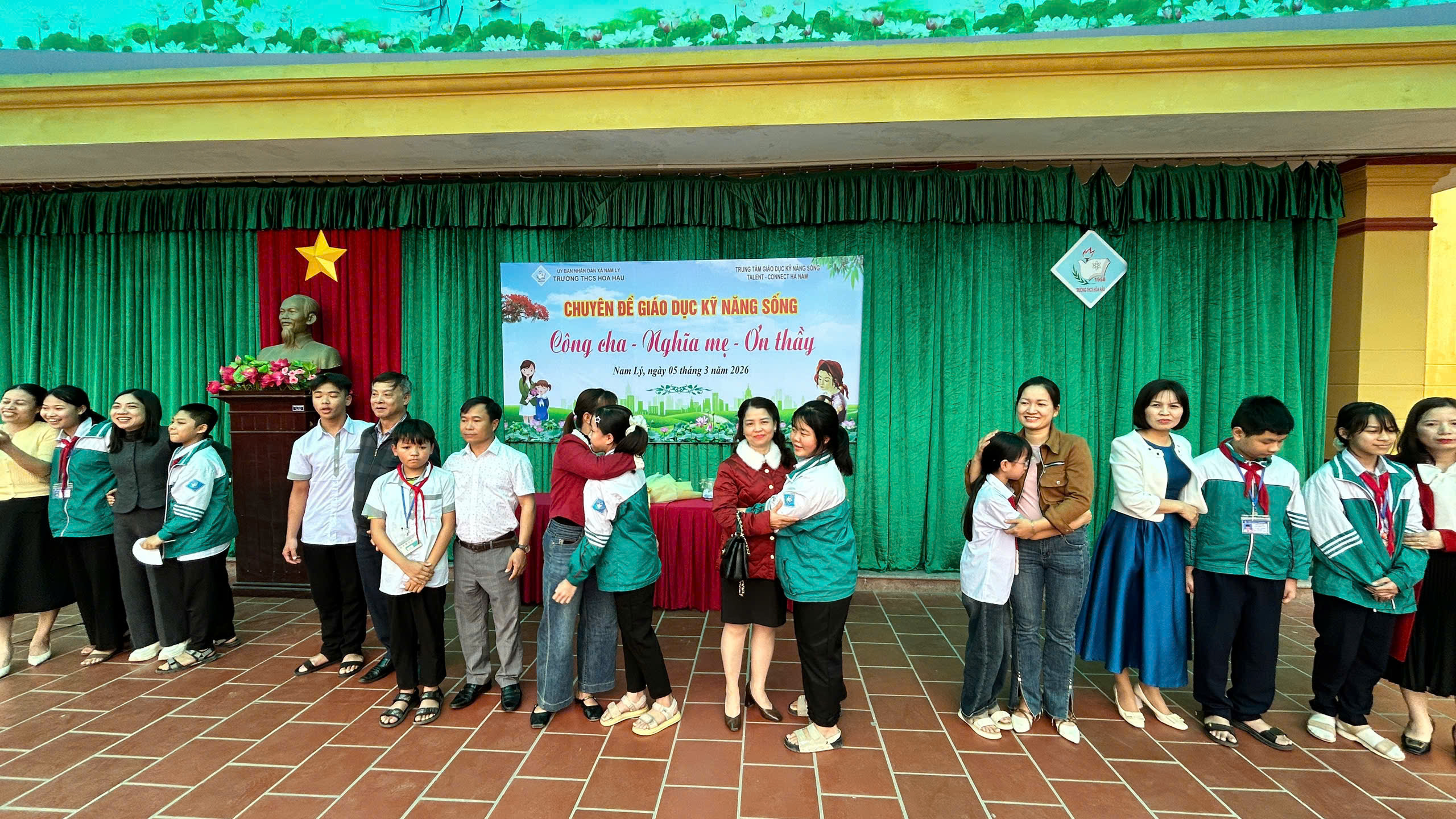 Chiều ngày 05/3/2026, Trường THCS Hòa Hậu phối hợp với Trung tâm Giáo dục Kỹ năng sống Talent‑Connect tổ chức chương trình ngoại khóa kỹ năng sống cho học sinh toàn trường với chủ đề “Công cha, Nghĩa mẹ, Ơn thầy”. Tham dự chương trình có đại biểu Ban đại diện cha mẹ học sinh, Ban giám hiệu, toàn thể giáo viên nhà trường cùng hơn 1000 học sinh của nhà trường.